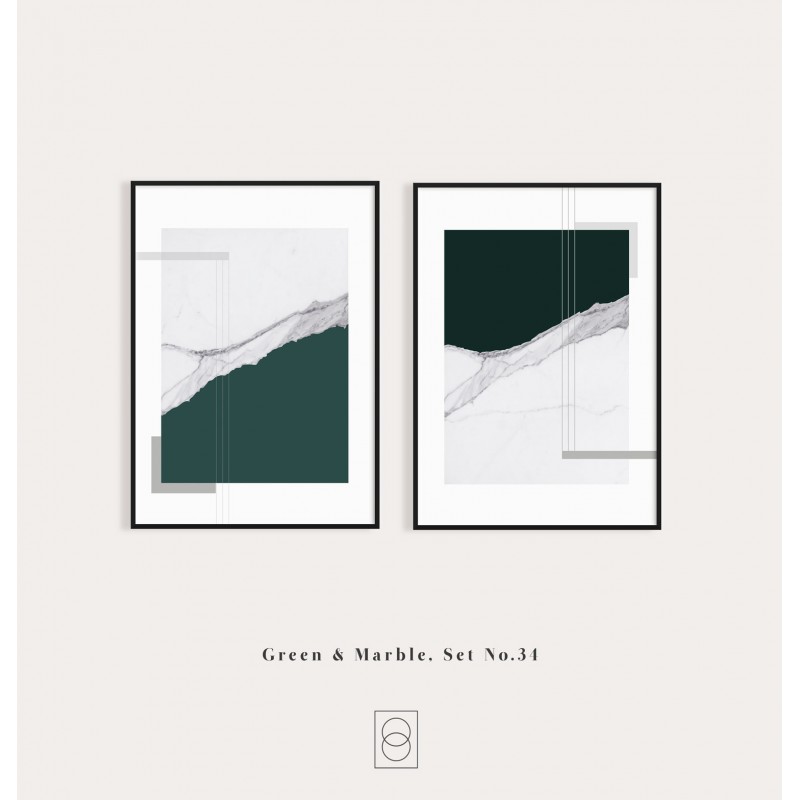 Marble 3 i 4 | Zestaw | plakaty do wnętrz z zielenią i marmurem