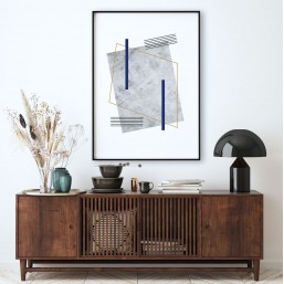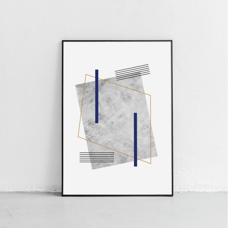 Plakat "Marine 2" - nowoczesny plakat na ścianę z motywem szarego kamienia, formami geometrycznymi i granatowymi akcentami.